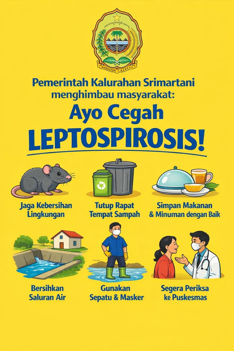 Untuk menekan peningkatan jumlah kasus, penularan, dan kematian akibat Leptospirosis, Lurah Srimartani H.Mulyana menghimbau masyarakat untuk meningkatkan kewaspadaan dan menerapkan langkah-langkah pencegahan. Upaya tersebut antara lain dengan membersihkan rumah dan lingkungan secara rutin guna mengurangi tempat berkembang biaknya tikus, menjaga kebersihan saluran air atau got agar tetap lancar, serta menyimpan dan menutup makanan dan minuman dengan baik agar terhindar dari jangkauan tikus.