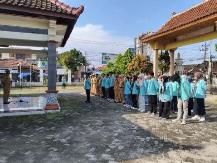 Srimartani. Pemerintah Kalurahan Srimartani melaksanakan apel pagi pamong pada Senin, 19 Januari 2026, pukul 08.00 WIB di halaman Kantor Kalurahan Srimartani. Kegiatan ini diikuti oleh seluruh pamong dan staf kalurahan serta mahasiswa Kuliah Kerja Nyata (KKN) dari Universitas Sebelas Maret (UNS) Surakarta.