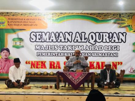 Srimartani. Untuk meningkatkan kwalitas iman dan takwa masyarakat Srimartani maka pada bulan ke-10 ini diadakan Pengajian Ahad Legi (26/10/2025). Narasumber pada majelis ini adalah K.H.Hasan Asy'arie dari Pleret, Bantul. Seperti majelis yang sudah berlangsung sebelumnya majelis ini diawali dengan semaan Alquran yang dipandu oleh para hafizhah dan dilanjutkan dengan pengajian (ceramah) yang diikuti oleh para jamaah yang berasal dari 17 padukuhan, dihadiri juga oleh para mahasiswa KKN UNY yang sedang belajar di Srimartani. Red-Cr
